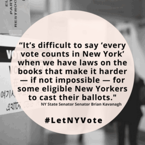 New York has repeatedly ranked as one of the worst states for voter turnout, and barely more than half of voters regularly take part in each statewide election. This failure is largely driven by outdated laws that make it harder for New Yorkers to vote.